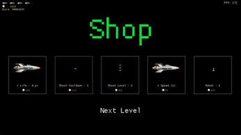 Between levels, you hit the shop to upgrade your fire rate, unlock guided rockets, and hope to survive just a little longer next round. Spoiler: you're still going to die.