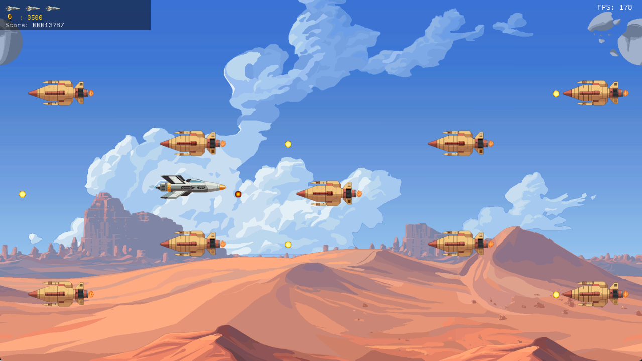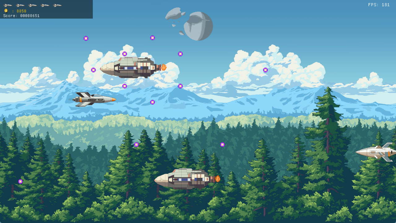 - bongseng Parallax backgrounds, enemies & player ship
